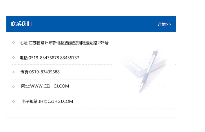 傳真:0519-83435688    郵編:213135    網(wǎng)址:WWW.czjhgj_com.dalian-hualian.com    電子郵箱:JH@czjhgj_com.dalian-hualian.com